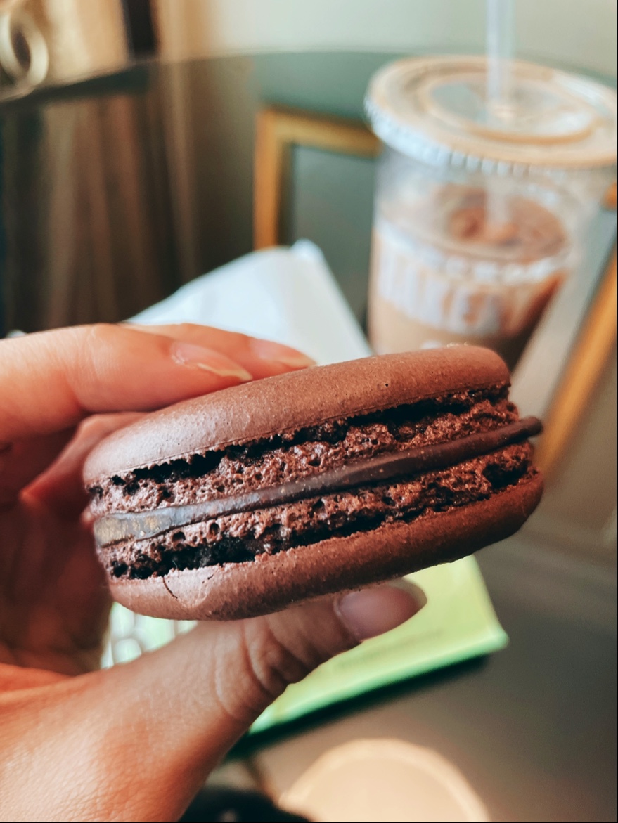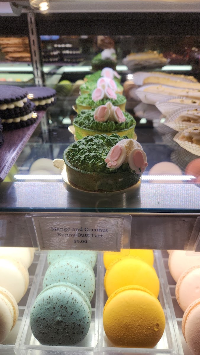 The offerings lean heavily into classic French-inspired pastries, with standout items like a flaky, buttery croissant often requested warm, and macarons that bring a soft crunch and chewy texture filled with rich flavors—pistachio and salted caramel being popular choices. For those seeking something savory, the ham & cheese croissant or even a hot ham baguette fits the bill for a portable, subtle meal. The coffee here provides a real alternative to the standard Strip options, showing up in drinks like an iced caramel latte with a notably robust espresso base.